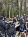 Am 13. Januar fand die diesjährige Grünkohlwanderung statt und das Wetter schlug gerade noch rechtzeitig von nass und matschig auf leichten Schnee und festen Boden um. Die Wanderung führte uns nach Helmerkamp, wo die erste Vorsitzende an mehreren Stellen Informationen zur Dorf- und Forsthistorie vortrug. Kaffee, Kuchen und Glühwein konnten wir dann direkt am Waldrand genießen. Der Weg zurück führte über den gut ausgebauten Radweg entlang der Hauptstraße zum Heidehof Ahnsbeck, wo die ca. 90 Teilnehmer (Rekord!) zum traditionellen Grünkohlschmaus einkehrten. Die 1. Vorsitzende Uta Lüßmann gab dann einen Ausblick auf das Vereinsjahr 2013, in dem ein Jubiläum begangen wird: Den ersten Backtag gab es vor genau 25 Jahren! Aus diesem Anlass führte sie auch stilecht über einen 8 mm Projektor mehrere Filme vor, die einen Rückblick auf die letzten 25 Jahre erlaubten.