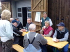 Dieses Jahr hat uns die Grünkohlwanderung ins Schmarloh geführt. In Sichtweite des Windparks hat die 1. Vorsitzende Uta Lüßmann uns Informationen zu diesem Höhenzug in der Südheide gegeben. Von dort ging es über Feldwege zu einem kleinen Teich im Wald, an dem uns Kaffee, Glühwein und Kuchen erwarteten. Zum Glück hatten wir den 18.01. gewählt, an allen vorherigen Wochenenden im Januar wäre es mit Sicherheit zu nass und matschig gewesen. So konnten wir bei leichtem Frost die Wege begehen, Pfützen und Matsch gab es allerdings noch genug. An dem Teich gab es eine alte Hütte mit Sessel und Kamin sowie eine Toilette mit Herztür mitten zwischen den Bäumen zu besichtigen. Diese war extra für uns gereinigt worden und ließ sich sowohl für ihren eigentlichen Zweck als auch für nette Fotos mit Herzrahmen nutzen. Von dem Teich wanderten wir zum Heidehof, wo uns zur Belohnung lecker Grünkohl erwartete. Vor dem Essen gab es eine Diaschau mit einem Rückblick auf das Jubiläumsjahr 2013, nach dem Essen zeigte Uta einen Film von 1975 mit dem ersten Besuch eines Ahnsbecker Busses in Bricquebec vor inzwischen 40 Jahren, dem Städtepartner der Samtgemeinde Lachendorf. Hier gibt es ein Französisch-sprachiges Blog mit Informationen zu Besuchen im Rahmen dieser Partnerschaft.