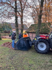 Mit teilweise bis zu 18 Freiwilligen wurde sieben Stunden lang geharkt, geschaufelt und gekehrt was das Zeug hielt. Ohne den Einsatz schweren Geräts in Form mehrerer Trecker, Anhänger und Radlader von Vereinsmitgliedern wären wir trotzdem nicht soweit gekommen. Auch ein Anwohner des ebenfalls als Spielplatz genutzten Areals fand sich spontan ein, um mitzuhelfen.