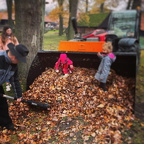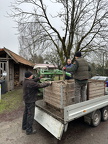 Mit dabei auch Fritze Lüßmann und Uwe Kühn mit Treckern, Frank Heuer mit einem Radlader und später Stefan Preuß mit schwerem Gerät. Während das Zusammenharken des Laubs noch mit Laubharken geschieht, ist das Aufladen durch die Fahrzeuge viel einfacher.
